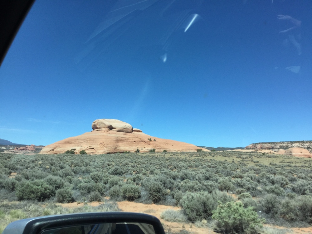 By 10:00, it was pretty hot already, so we took off from Chama, in NW New Mexico. We drove through a corner of Colorado. There were pretty mountain cabins and cute touristy towns like Pagosa Springs and Durango. We passed by Chimney Rock National Monument, which really does look like a chimney.
